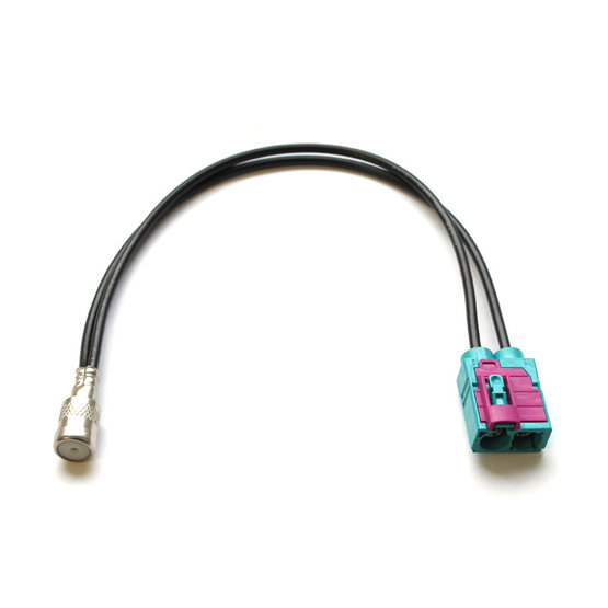 Anténní adaptér pro připojení autorádia / navigace s dvojitým FAKRA konektorem do automobilů s ISO autoanténou. Vhodné pro automobily: VW/Škoda/Seat/Audi