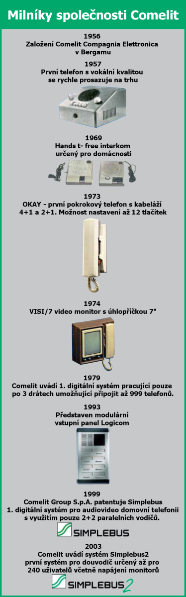 Každý rád bilancuje, když jsou v jeho stopách čitelné výsledky a tyto stopy nemizí ihned u dalšího kroku, jako tomu je při chůzi v písku. Italský výrobce Comelit je příkladem společnosti, která za sebou technologické stopy zanechává již od roku 1956. V dnešní době tyto stopy, do centrály v severní Itálii, vedou z více než 70 zemí celého světa.