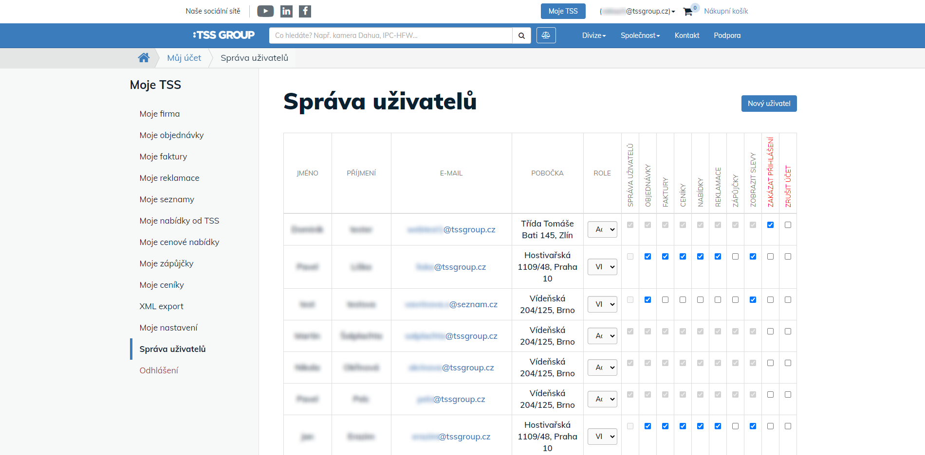 Jednou ze zásadních novinek, kterou nový web přináší, je možnost rozlišit různé role u jednotlivých uživatelských účtů. Díky tomu je možné uživatelům individuálně nastavit přístup pouze do vybraných agend nabízených v rámci zóny Moje TSS.