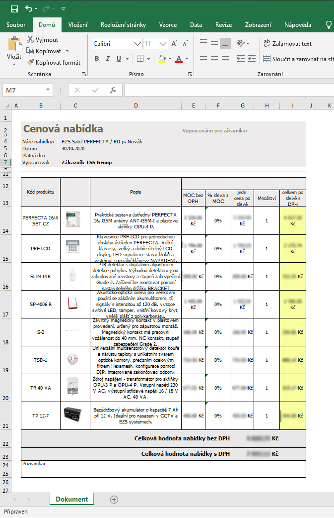 NOVĚ je možné do cenové nabídky vytvářené pro koncového zákazníka vložit také pole s vlastní textovou poznámkou. Tato poznámka se zobrazí také ve vygenerovaném XLS souboru.