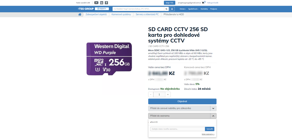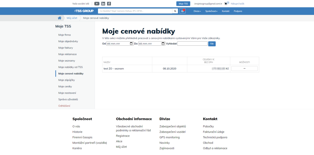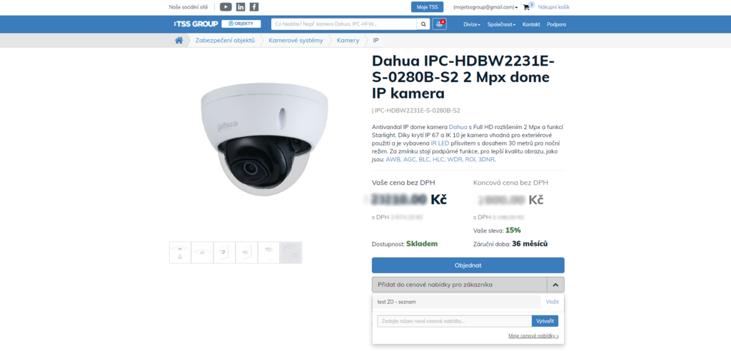 Další novinkou, kterou jsme pro vás připravili je možnost vytvářet vlastní cenové nabídky pro své zákazníky. Vybraný konkrétní produkt můžete buďto přímo přidat do takovéto cenové nabídky nebo můžete u produktu vytvořit cenovou nabídku novou. Všechny tyto nabídky pak naleznete v klientské zóně Moje TSS v sekci Moje cenové nabídky.