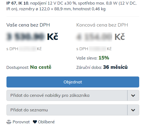 Přidání produktu do cenové nabídky pro zákazníka (po přihlášení)