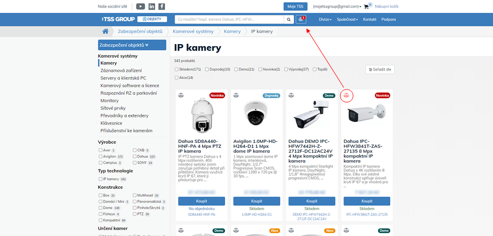 NOVĚ lze produkty přidávat do porovnávače nejen v detailu produktu, ale také jakékoliv jiné zobrazené produkty (získané filtrováním, alternativní, související).