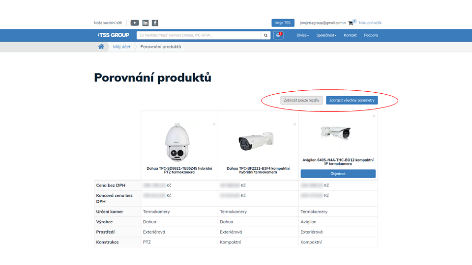 NOVĚ je pro větší přehlednost možné u srovnávaných produktů zobrazit pouze parametry, ve kterých se mezi sebou liší.
