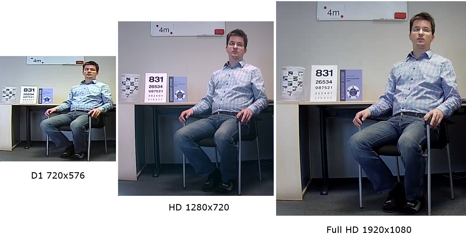 Rozlišení kamery samozřejmě není alfa a omega při montáži kamer. Důležitá je i volba počtu kamer a jejich umístění. Nelze vždy vše vyřešit jednou kamerou s vysokým rozlišením a doufat, že pokryje celý prostor dané scény. Pro představu přidáváme příklad porovnání D1, HD a Full HD kamery. Každý uživatel si musí udělat sám obrázek o tom, jaký detail mu při provozování kamerového systému, pro jeho účel stačí.