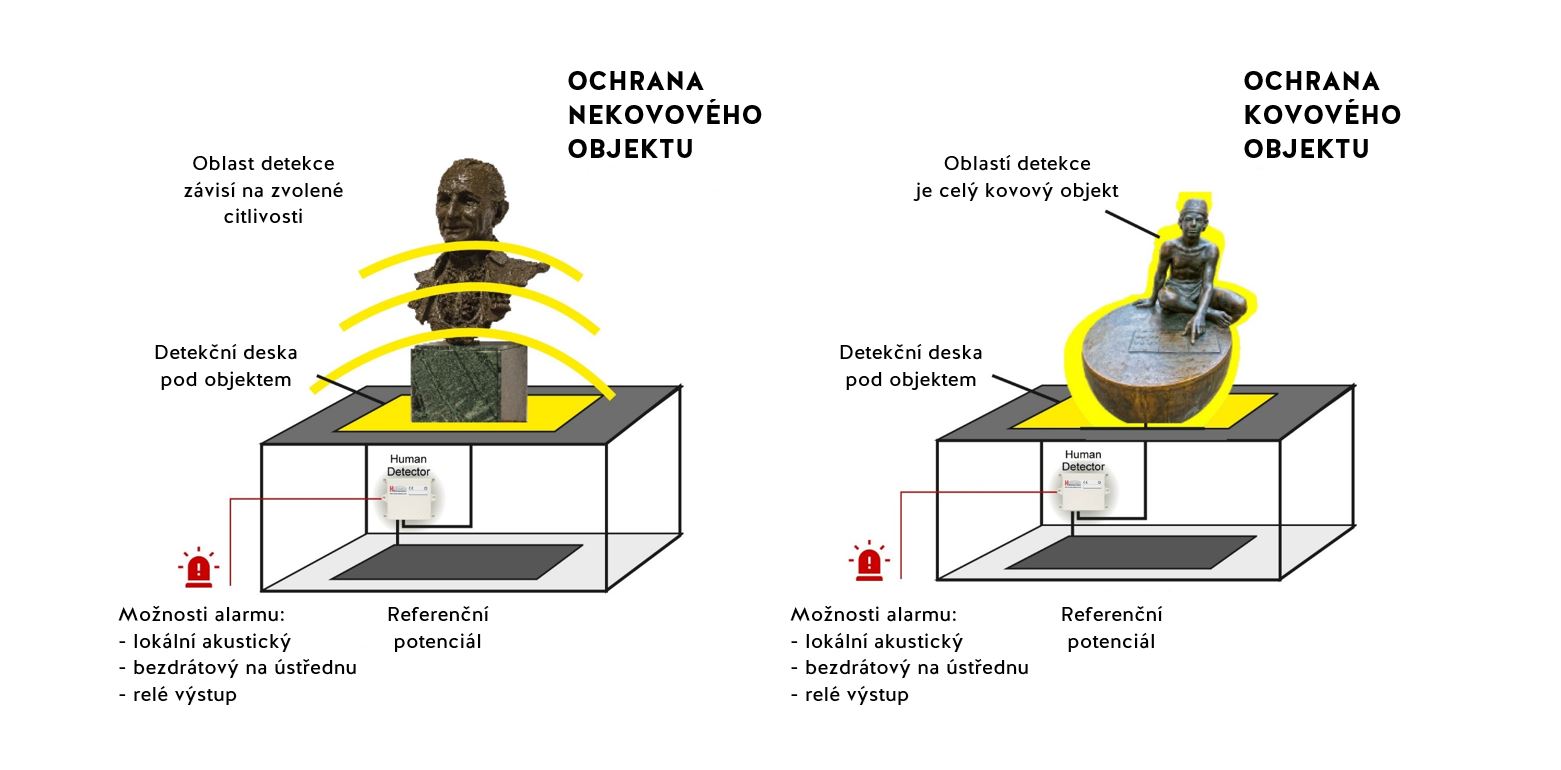 Ideální řešení pro tyto situace nabízí systém Human Detector, který byl pro tyto účely vyvinut v Německu a je díky svým nesporným kvalitám používán v mnoha prestižních muzeích a galeriích po celém světě (například v pařížském Louvre…). Své uplatnění však může najít třeba i v soukromých sbírkách, klenotnictvích nebo showroomech autosalonů.