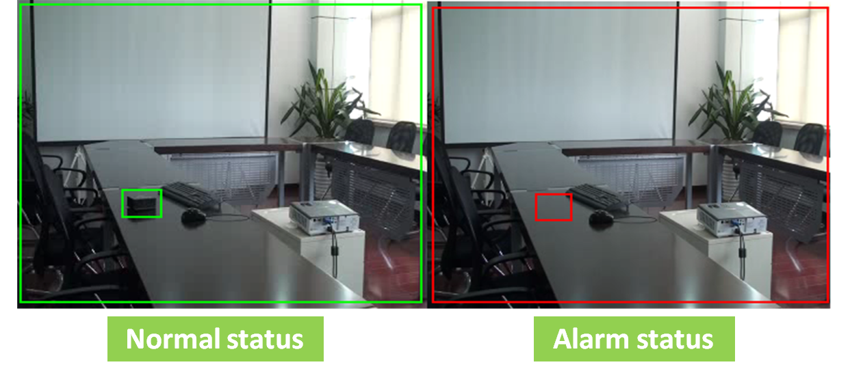 Kamera provádí kontrolu oblasti a upozorní na odcizený objekt, který byl součástí dohlíženého prostoru.