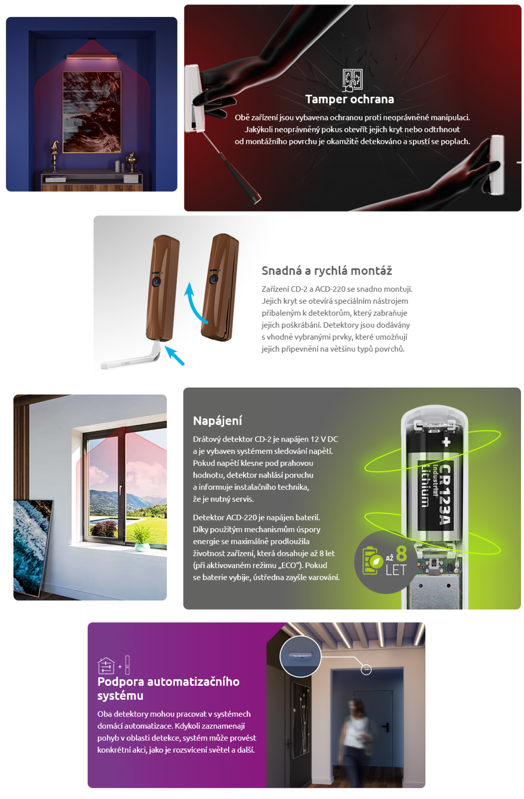 | Detektory | Bezdrátové detektory - ABAX 2, Bezdrátové, PIR |