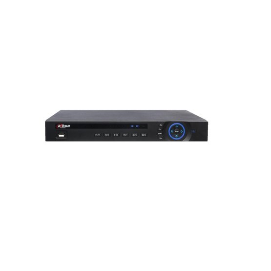 Záznamové zařízení pro IP kamery, umožňující záznam 8 kamer. Pro záznam slouží vnitřní úložiště o maximální kapacitě 12 TB. Obrazovou informaci je možné zobrazit přes rozhraní HDMI nebo VGA přímo na monitor. NVR obsahuje PoE switch pro 8 kamer. Vzdálený dohled zprostředkuje aplikace iDMSS, nebo program Smart PSS.