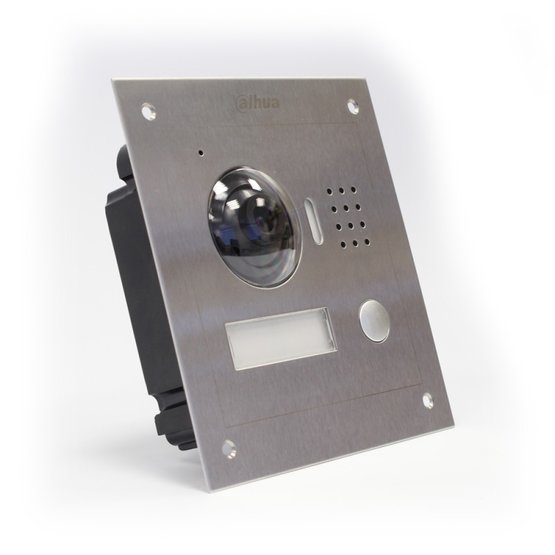 IP Dahua dveřní kamerová jednotka s jedním tlačítkem, podsvícená jmenovka, antivandal nerez provedení, 1,3 Mpx barevná kamera, 110° úhel pohledu, H.264 komprese, TCP/IP komunikace, nastavování přes webové rozhraní, LED přisvětlení snímaného prostoru, funkce zanechání vzkazu uživateli, IP 43, 1x kontakt NO/NC pro ovládání zámku (dálkově aplikacemi gDMSS nebo iDMSS), 1x NO kontakt odjezdového tlačítka, 1x RS-485 pro připojení modulu ovládání 2. dveřního zámku DEE1010B, napájení Dahua PoE switchem (pro napájení není možné použít standardní typ PoE switche) nebo napájení 12 V DC / 800 mA (zdroj není součástí balení), montáž pod omítku / na omítku, rozměry 140 x 130 x 32 mm, bez instalační krabice