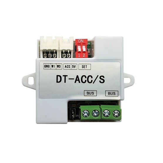 Převodník wiegand26 signálu, 2x vstup / výstup pro připojení na sběrnici, 1x wiegand26 výstup pro zapojení do stávajícího přístupového systému, rozměry 45 x 45 x 16 mm, vnitřní použití, podporované modely: DJ 4T (8T) ID v2, DJ 4T (8T) ID F, DJ 32T ID F, DJ 1T ID v2, DJ 2T ID v2, DJ 4T ID C