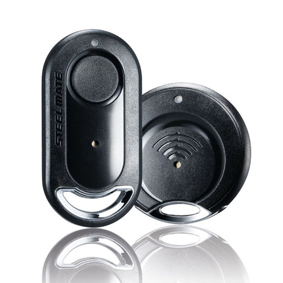 i880 Steelmate inteligentní sledovací Bluetooth systém s mobilní aplikací "Trackmate", pro ochranu cenných věcí na krátkou vzdálenost (ochrana zavazadel, klíčů, osoby, zvířete a jiné). Dálkový ovladač obsahuje také funkci spuštění selfie-fotografování z mobilního telefonu.