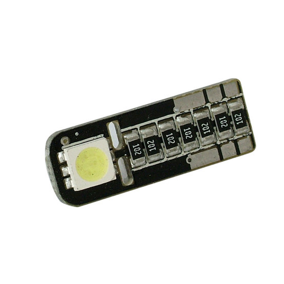 CAN BUS LED žárovka s paticí T10, bílé světlo, 1 LED / 3 SMD, vhodné do parkovacích světel, do stropního osvětlení anebo pro jiné použití ve vozidle, napájení 12V. Sada obsahuje 2 ks žárovek.