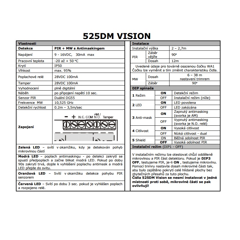 Paradox 525DM VISION A-M dual PIR+MW detektor