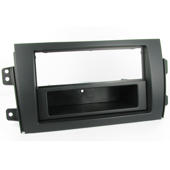 Plastový rámeček s odnímatelným kastlíkem pro 1DIN / 2DIN rádia vozidel Suzuki SX4, Fiat Sedici, černá barva.