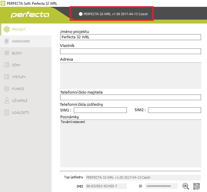 • Ústřednu PERFECTA, na které má být proveden upgrade