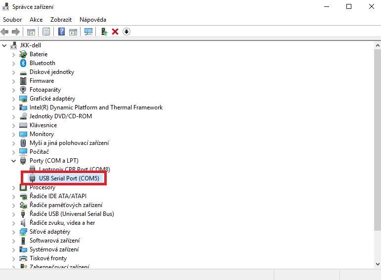 2. Zkontrolujte nastavení COM portu