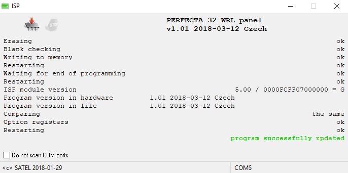 Zkontrolujte, zda máte požadovaný firmware pro vaši ústřednu PERFECTA. Pokud ne, stáhněte nejnovější software z webové strany www.satel.eu nebo použijte přímé odkazy viz výše.