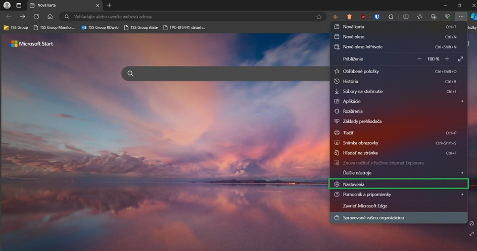 - V prohlížeči Edge klikněte na Nastavení.