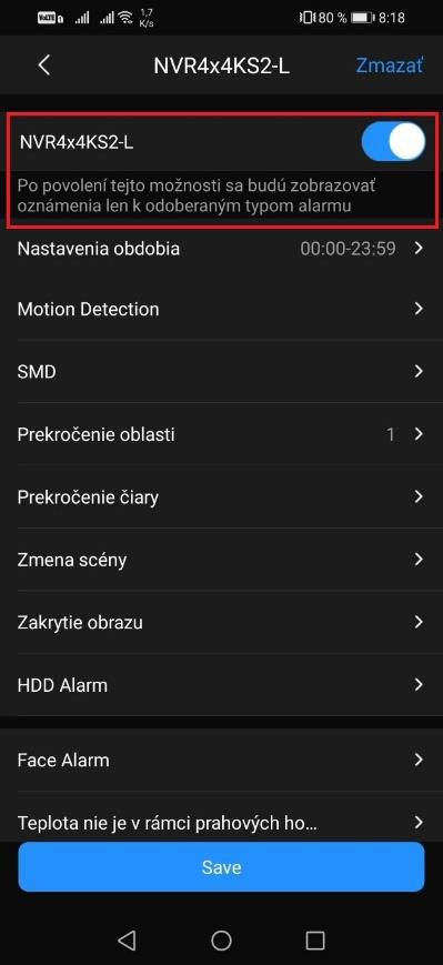 Všechny ostatní notifikace Vám budou chodit automaticky, ale nepřišel jsem nato, jak vypnout notifikace, aniž bych vypnul jejich funkčnost v rekordéru.