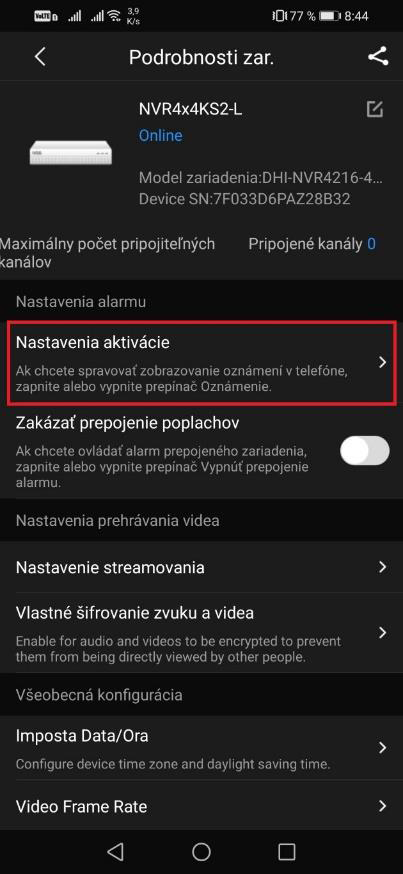 Pro DMSS s přihlášením funguje možnost nastavení DISARMINGu stejně jako u nepřihlášeného účtu, tedy víte ovládání notifikací nastavením této možnosti.