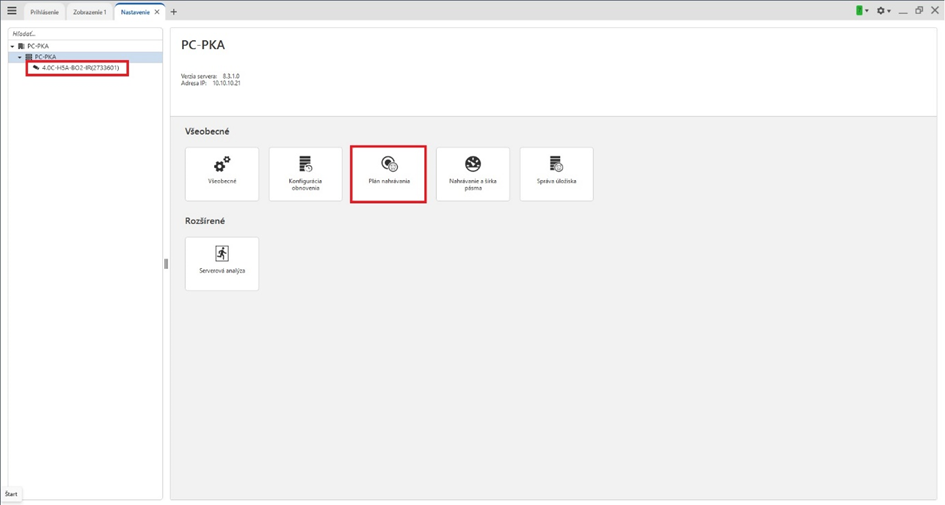 - V nastavení serveru vyberte možnost Plán nahrávání.