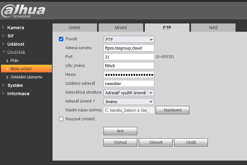 Nastavte časosběr na kameře Dahua jejím uložením na FTP.