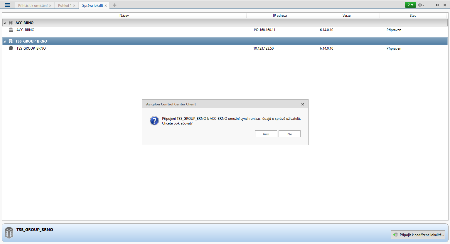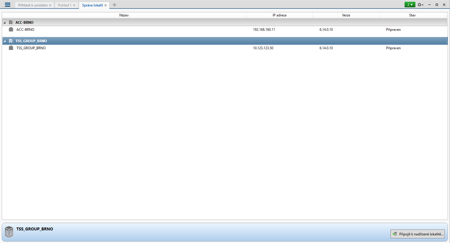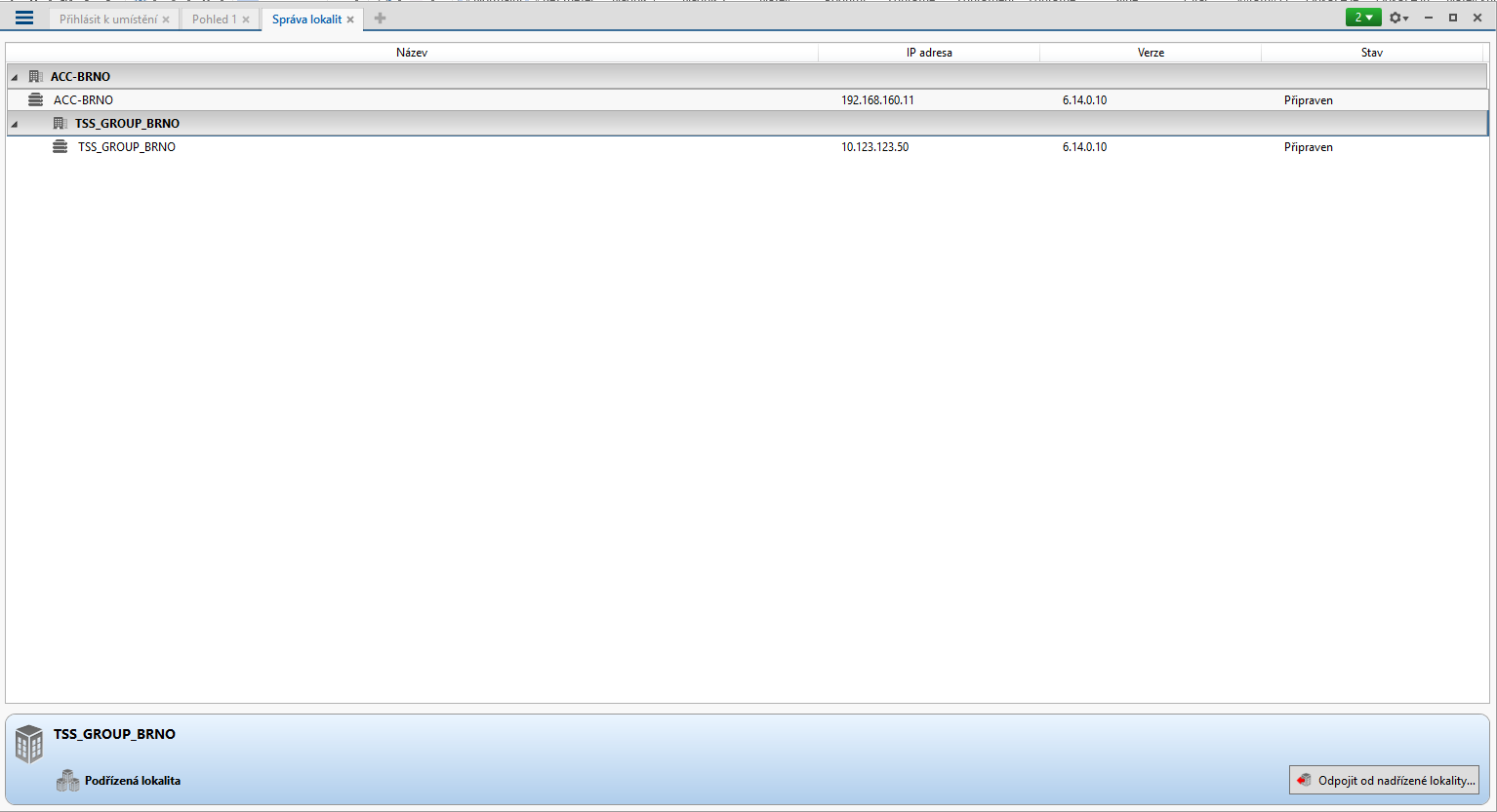 Tímto je vybraná lokalita TSS_GROUP_BRNO připojena jako Podřízená lokalita k Nadřízené lokalitě ACC_BRNO.