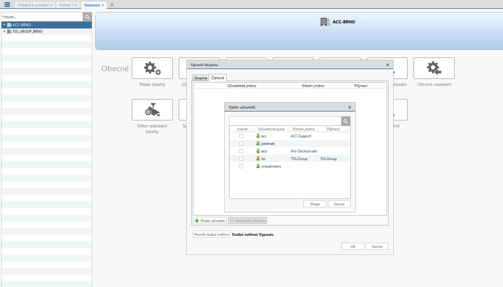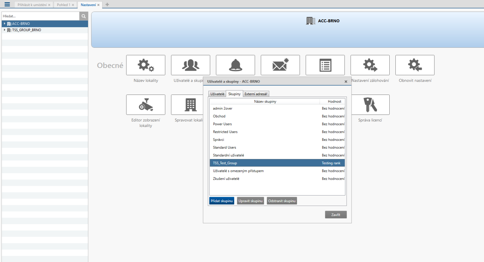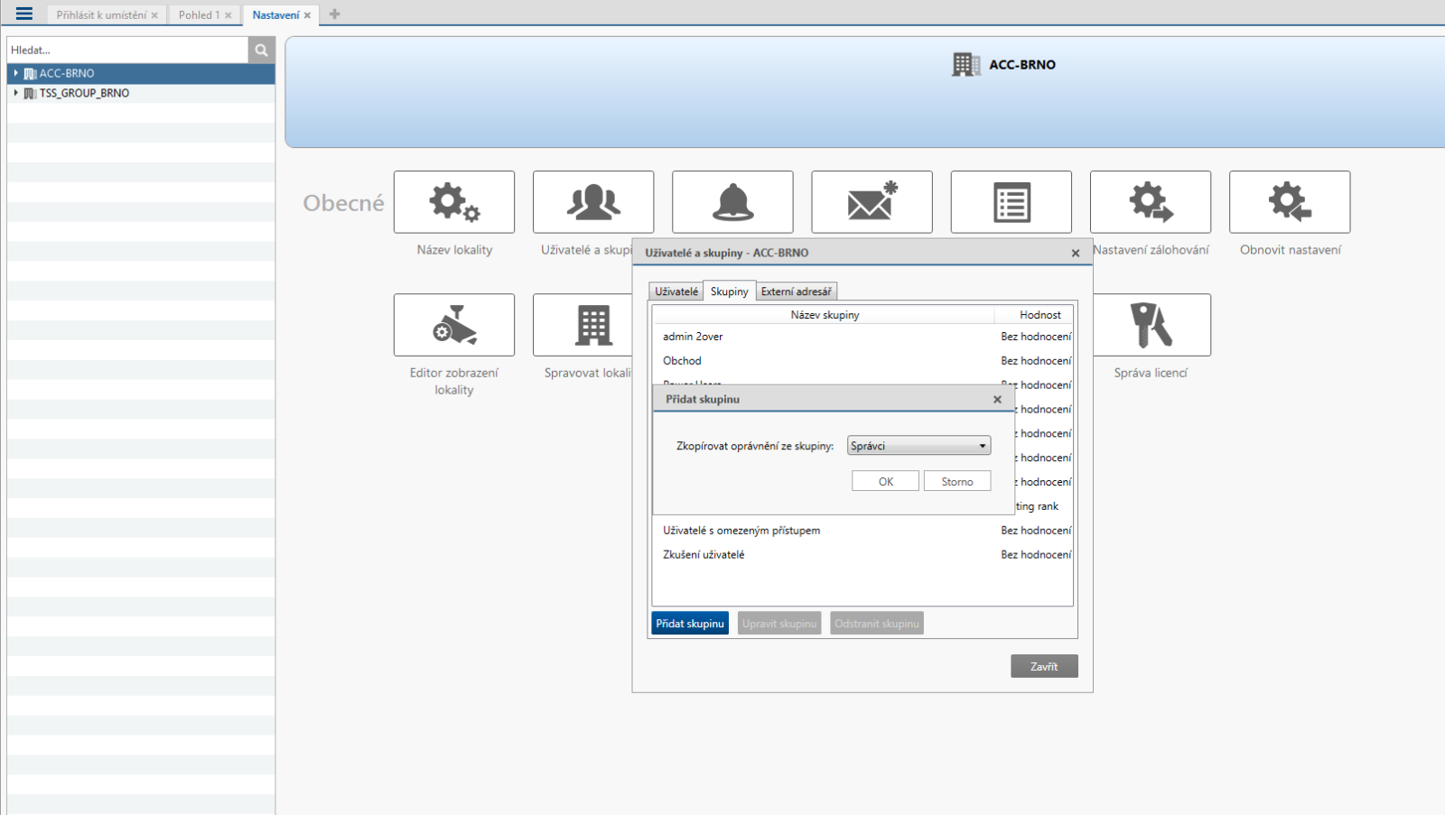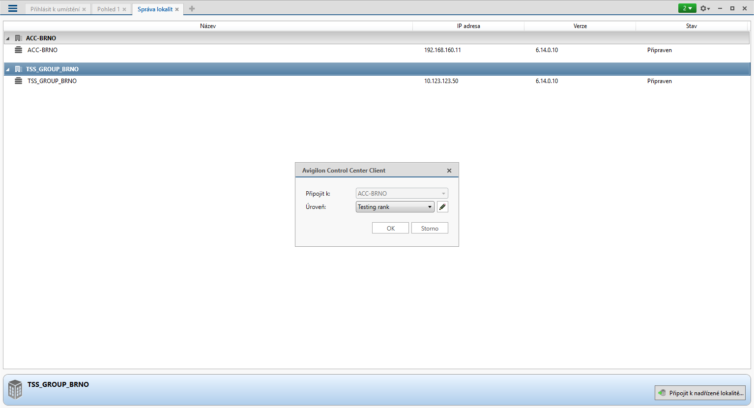 Tímto je vybraná lokalita TSS_GROUP_BRNO připojena jako Podřízená lokalita k Nadřízené lokalitě ACC_BRNO.