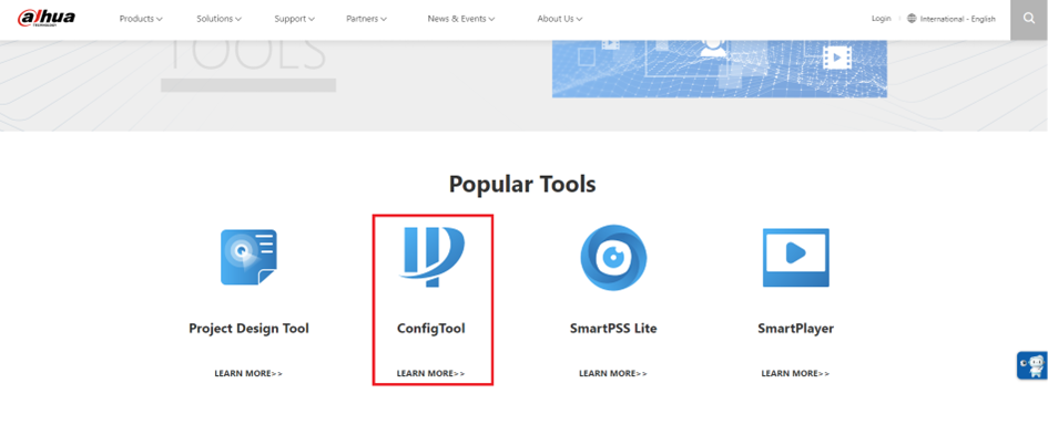 Pro správnou a jednoduchou aktualizaci firmvéru je třeba v prvním kroku stáhnout konfigurační nástroj ConfigTool. Tuto volně dostupnou aplikaci si můžeme stáhnout na: https://support.dahuasecurity.com/en/tools