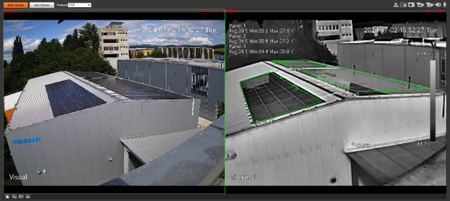 Termokamery mají v naší nabídce své místo dlouhodobě a k dispozici je celá škála modelů, vhodných pro sledování a kontrolu fotovoltaických panelů. Princip kontroly je založen na změření změny teploty mimo standardní (obvyklé) hodnoty. V portfoliu máme jak termokamery pouze s jedním termálním objektivem, tak tzv. hybridní nebo také bispektrální kamery, které jsou navíc vybaveny také objektivem pracujícím ve viditelném spektru pro dodatečnou vizuální kontrolu snímané scény. Kamery lze využít také k ochraně perimetru před vstupem nežádoucích osob do míst, kde je nainstalován fotovoltaický systém.