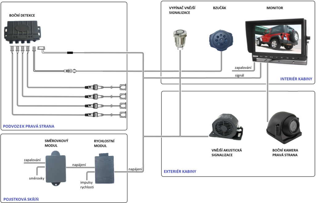 Instalovaný systém monitorování mrtvého úhlu zlepší řidiči vozidla (LKW, osobního, dodávkového) výhled na zranitelné skupiny lidí, kteří se nacházejí podél vozidla (na pravé nebo levé straně) v době, kdy se vozidlo rozjíždí a začíná odbočovací manévr, případně jej upozorní na vozidlo které se již nachází v jízdním pruhu, do kterého se řidič chystá zařadit.