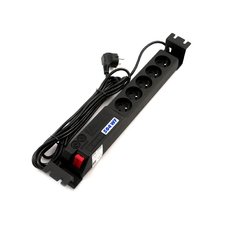 Přepěťová ochrana určená do racku. K výbavě patří ochrana pojistkami pro pět zásuvek, podsvícený vypínač a ...