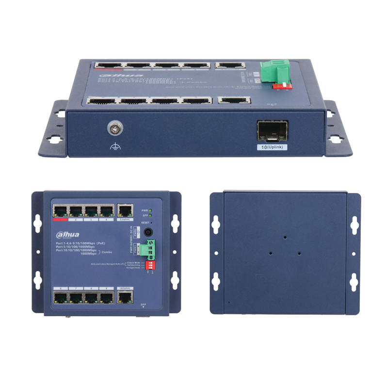 Dahua průmyslový spravovatelný switch vybavený 7× PoE+, 1× PoE++, 1× RJ-45 a 1× SFP / RJ-45 combo porty. Celkový odběr ...