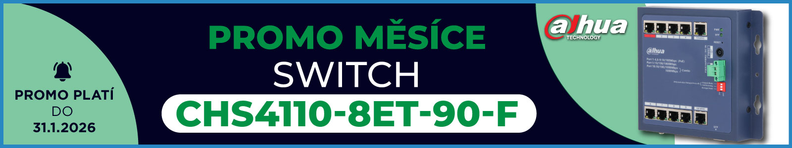 Spolehlivý síťový přepínač pro stabilní napájení a přenos dat v kamerových a IT sítích. Model Dahua CHS4110-8ET-90-F je 10portový PoE přepínač s 8× PoE porty a 2× gigabitovými uplink porty (1× RJ45 + 1× combo RJ45/SFP), navržený pro profesionální nasazení v kancelářích, malých a středních sítích či bezpečnostních systémech. Umožňuje flexibilní řízení provozu, robustní konstrukci a efektivní napájení PoE zařízení bez kompromisů.
