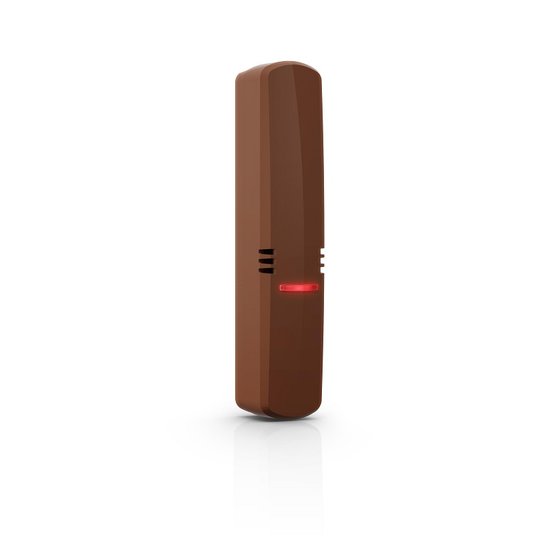 Bezdrátový multisenzor pro systém ABAX2 (868 MHZ), hnědý, měření teploty, atmosférického tlaku a vlhkosti vzduchu, dosah do 600 m na volném prostranství pro ABAX 2 s ACU-220, 600 m s ACU-280, měření teploty v rozsahu od -10° C do +55 °C, měření atmosférického tlaku v rozmezí od 260 hPa do 1260 hPa, měření vlhkosti vzduchu v rozmezí od 0% RH do 100% RH, nízký odběr v pohotovostním režimu 48 μA, kontrola stavu baterie, dvojitá sabotážní ochrana před otevřením a odtržením od zdi, lithiová baterie CR123A 3 V, životnost cca 5 let, rozměry 20 x 102 x 23 mm