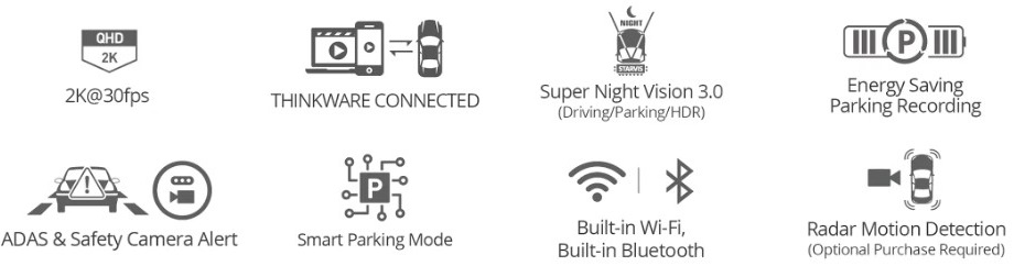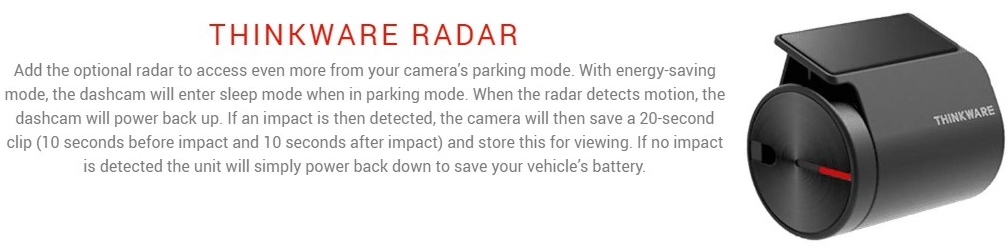 2K autokamera Q1000 Thinkware, umožňuje vzdálené připojení/náhled na kamery tak, že kamera se připojuje na internet přes dostupné Wi-fi sítě, obsahuje GPS, ke kameře lze dokoupit RADAR mikrovlnný modul, který umožní parkovací režim s ultra-nízkou spotřebou.