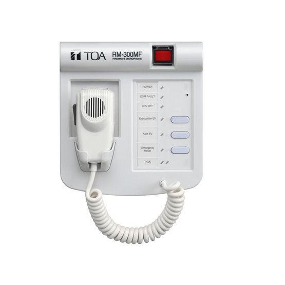 Mikrofonní stanice pro požární evakuační hlášení. Zařízení je vybaveno LED indikací a 3 tlačítky. Napájení je realizované z řídící ústředny VM 3000. V systému je možné použít maximálně tři mikrofony RM-300MF. Instalace je možná na pracovní stůl nebo na stěnu.