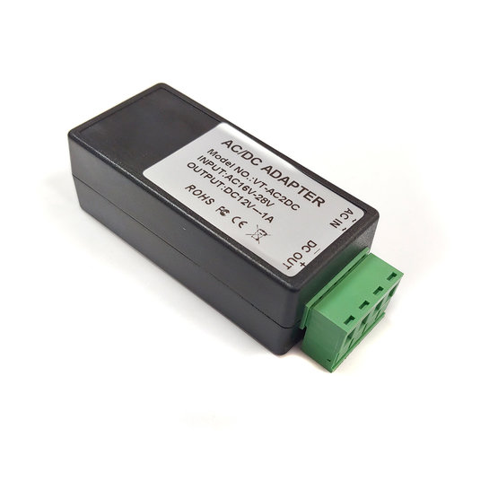V případě, že potřebujete napájet kameru na delší trase, je vhodnější použití střídavého napětí než stejnosměrného, protože má menší úbytek (ztráty) na trase vedení. Vzhledem k tomu, že je většina kamer napájena stejnosměrným napětím, je usměrňovač VT-AC2DC ideálním řešením pro kamerové instalace s dlouhými trasami 24 V AC a koncovým zařízením 12 V DC.
